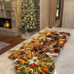feature a variety of cheese, meats, fresh fruits, dried fruits, olives, crackers, honey, jam, and accompaniments. Appetizer size portions. Our grazing tables start at a 20 person minimum, contact us for a custom quote.